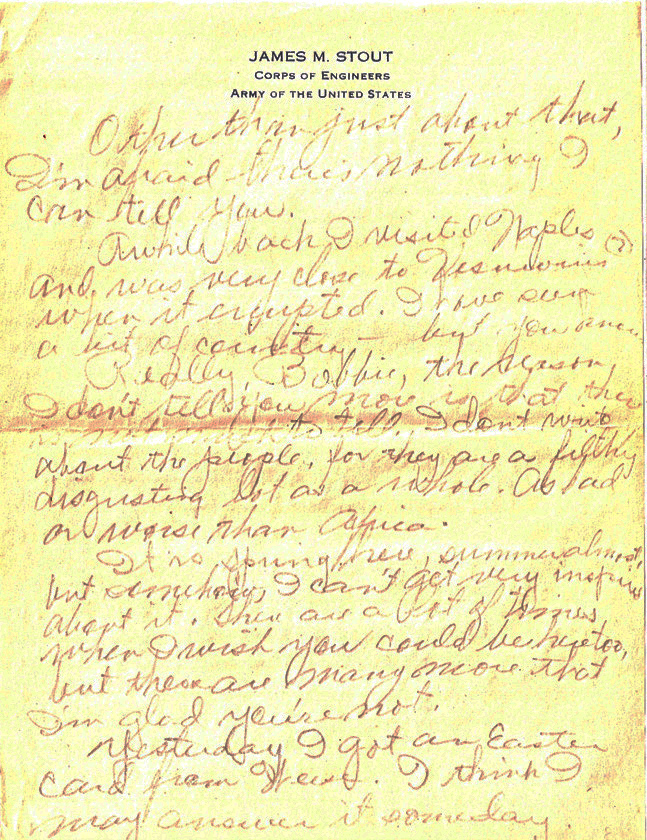 | 34th division 109th combat engineer battalion Leghorn Italy July 1945. James M Stout was injured while his buddies were killed. | |||||