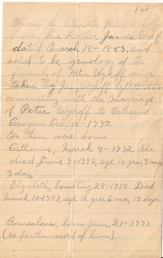 http://en.wikipedia.org/wiki/Pieter_Claesen_Wyckoff http://www.wyckoffassociation.org/index.html |