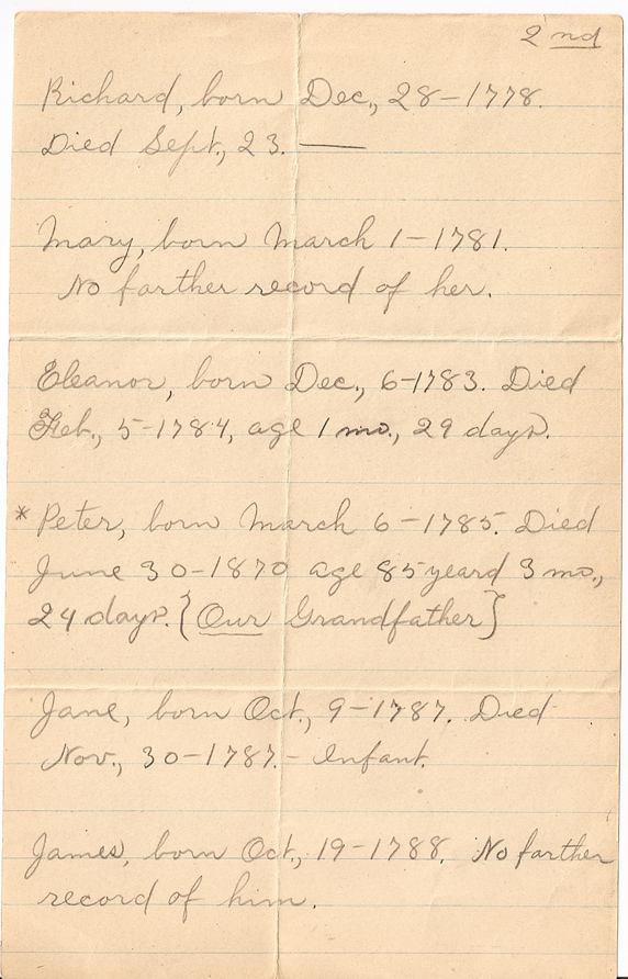| The following are papers for people descended from Peiter, but not related to me. | ||||