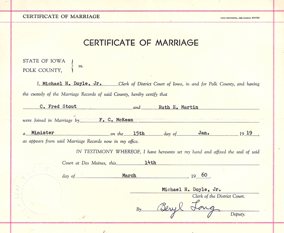 Ruth Elizabeth Martin Stout 1895 Newton Iowa | Back |