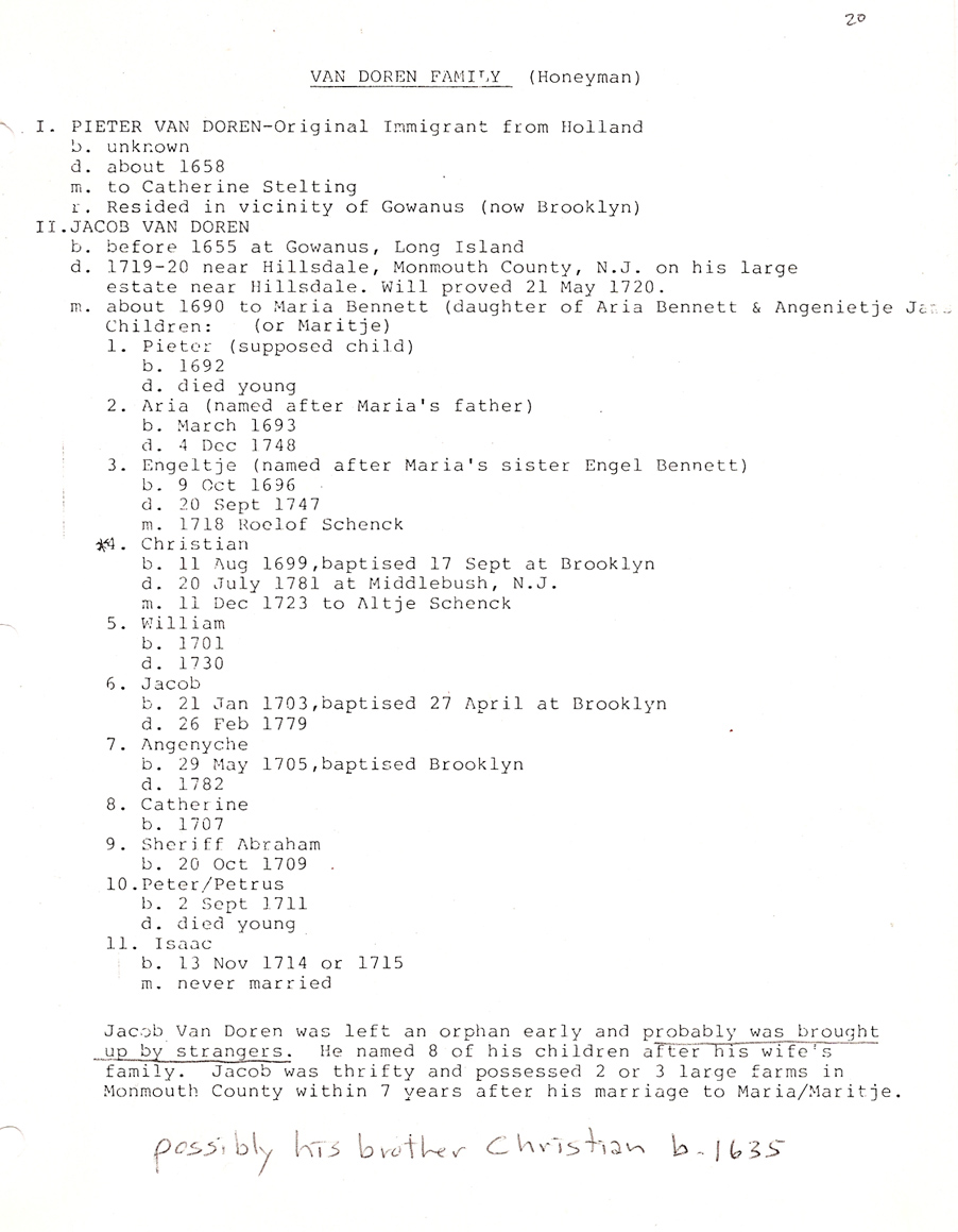 Children: Peiter Engeltje Christian William Jacob Angenyche Catherine Sheriff Abraham Peter/Petrus Issac Died: 1720